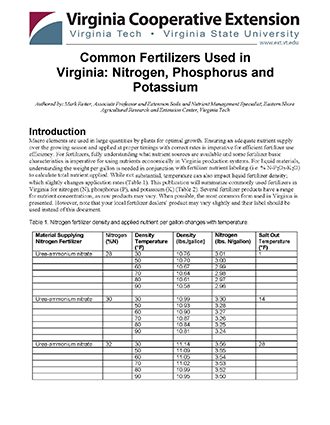 Common Fertilizers Used in Virginia: Nitrogen, Phosphorus and Potassium